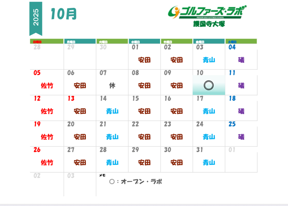 すべてのゴルファーを応援・サポートするゴルファーズ・ラボです。 10月のレッスンスケジュールをお知らせいたします。 10月は10月7(火)が休業日となりますのでご周知の程、よろしくお願い申し上げます。 ◎アクセス情報◎ 東京メトロ有楽町線 護国寺駅 3番出口より徒歩5分