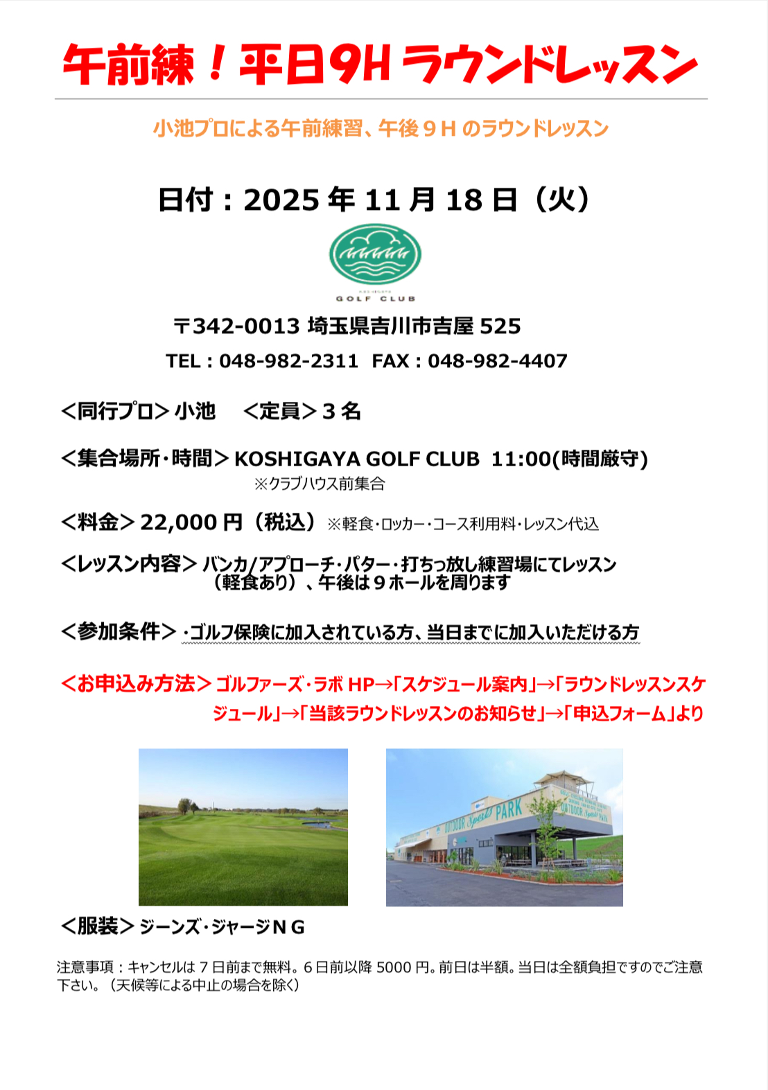 <集合場所・時間>KOSHIGAYA GOLF CLUB 11:00(時間厳守)
