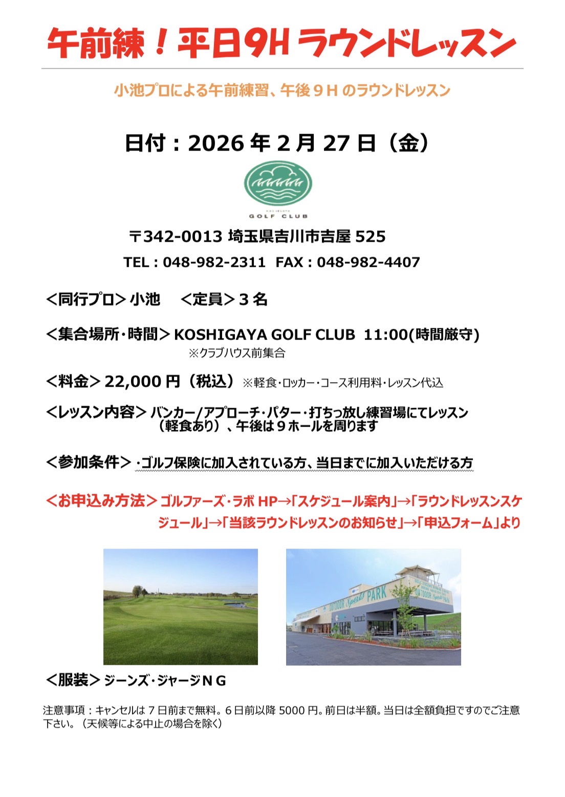 日時:2026年2月27日(金)KOSHIGAYA GOLF CLUB
