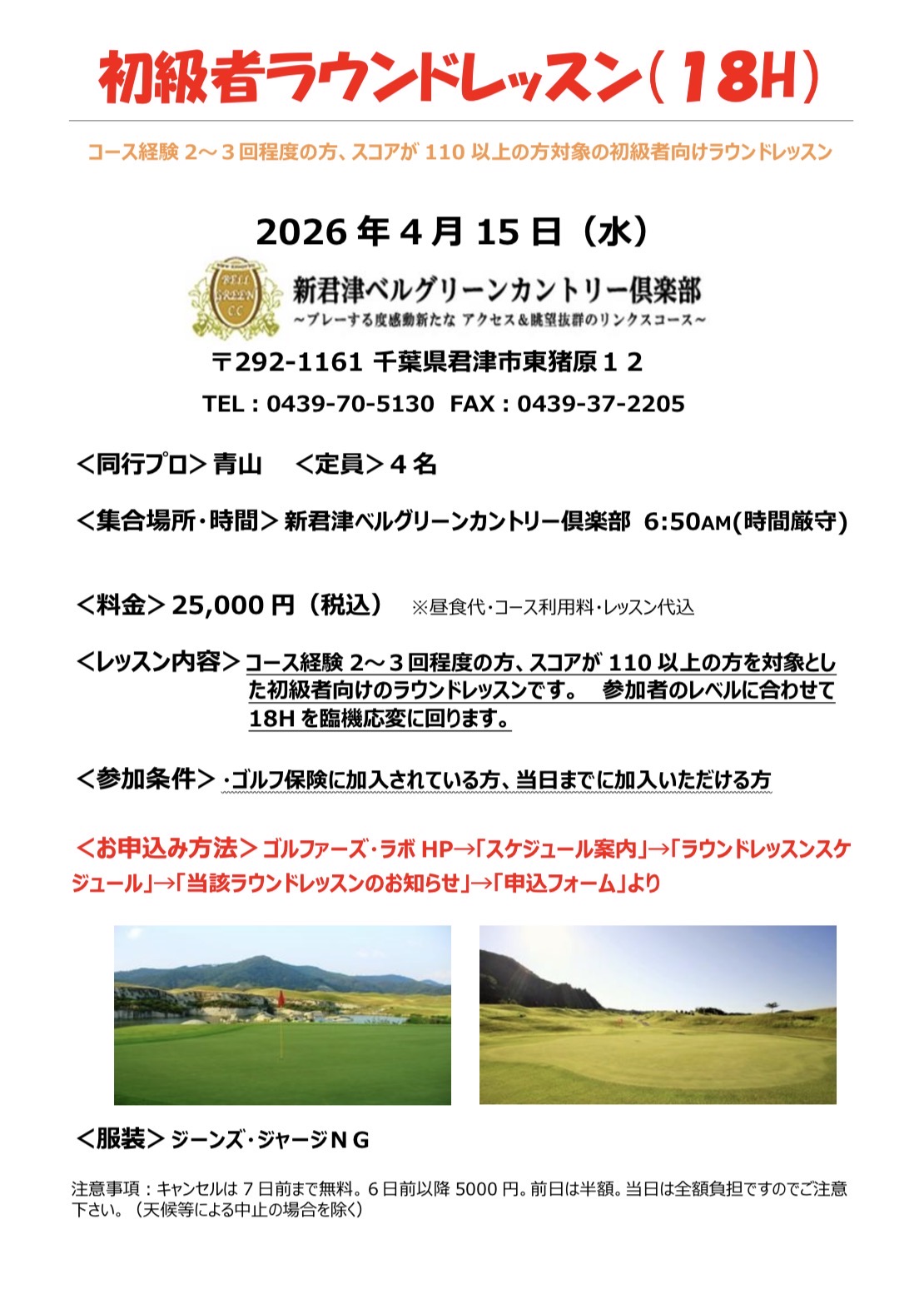 4月15日(水)初級者ラウンドレッスン(18H)申込フォーム