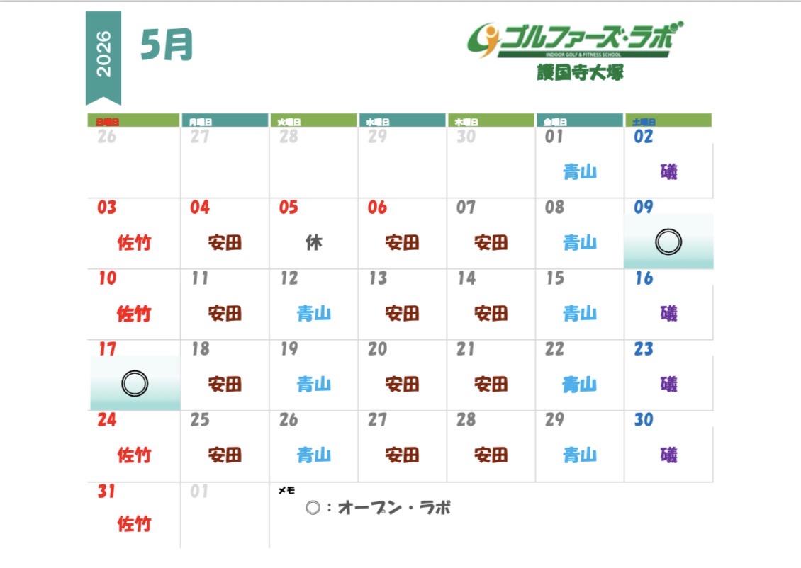 東京都新宿区・文京区ゴルフレッスンのゴルファーズ・ラボ » 5月 護国寺大塚店レッスンスケジュールのお知らせのページです。新宿区、若松河田で気軽にゴルフレッスン!