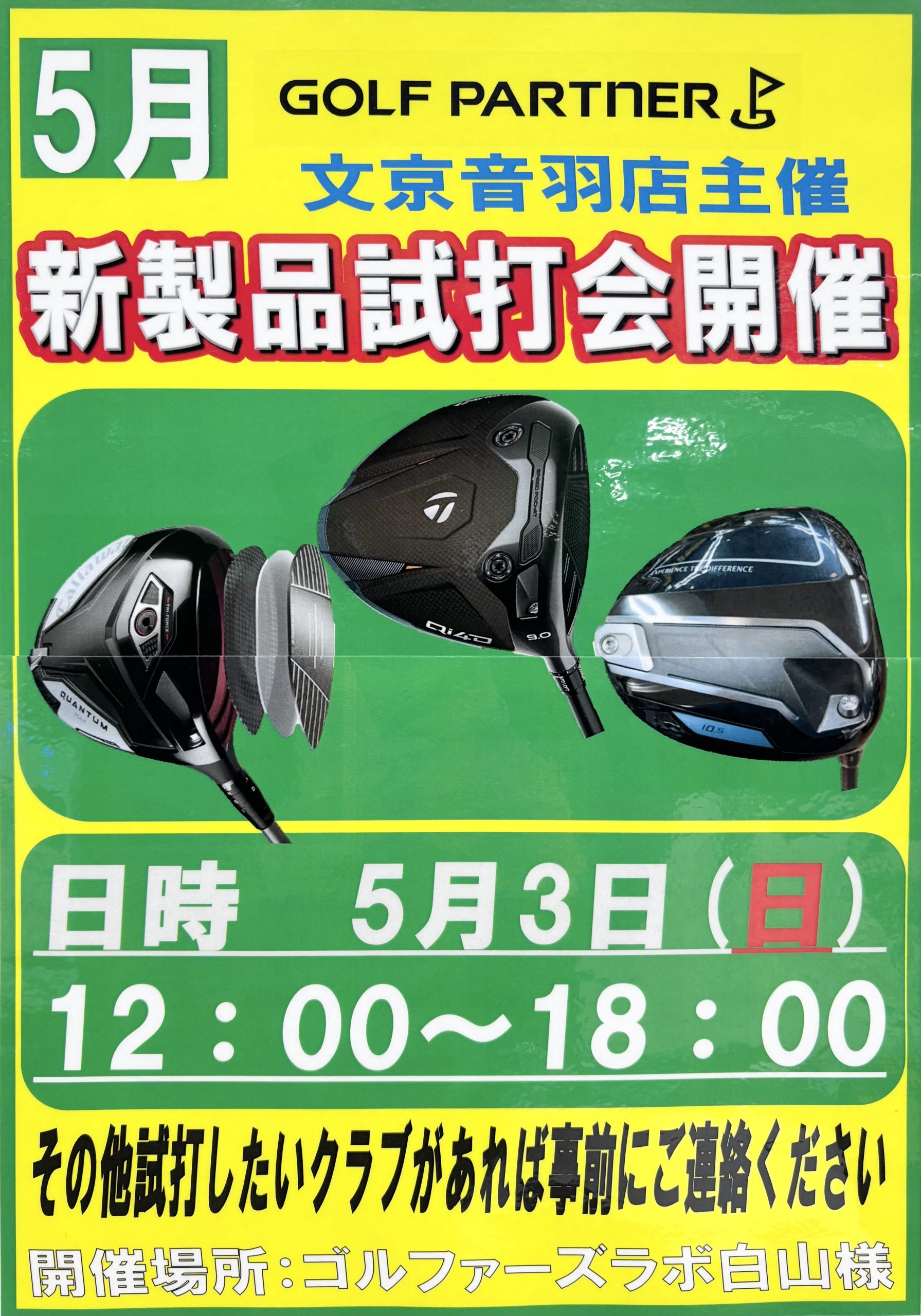 この度、5月3日(日)にゴルファーズ・ラボ白山店にてクラブ新製品試打会を開催致します。